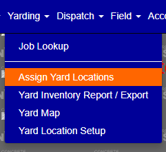 You access the Assign Yard Locations screen from Yarding menu > Assign Yard Locations as shown in Figure 1 below.
