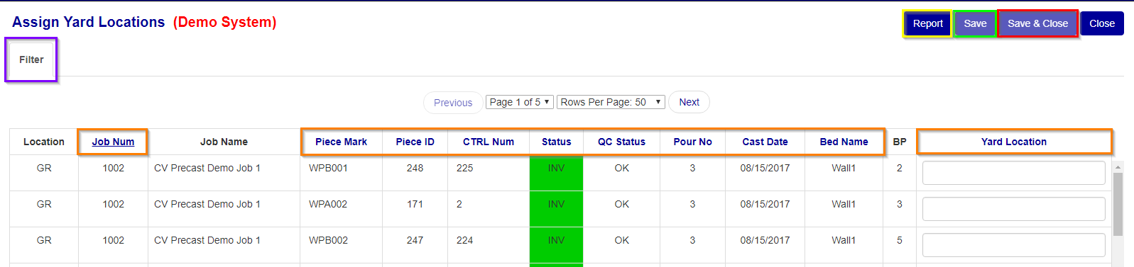 Filter Assign Yard Locations