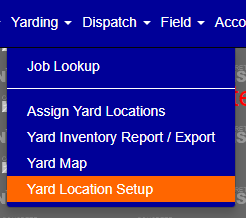 You access the Yard Location Setup screen from the Yarding menu, shown below.