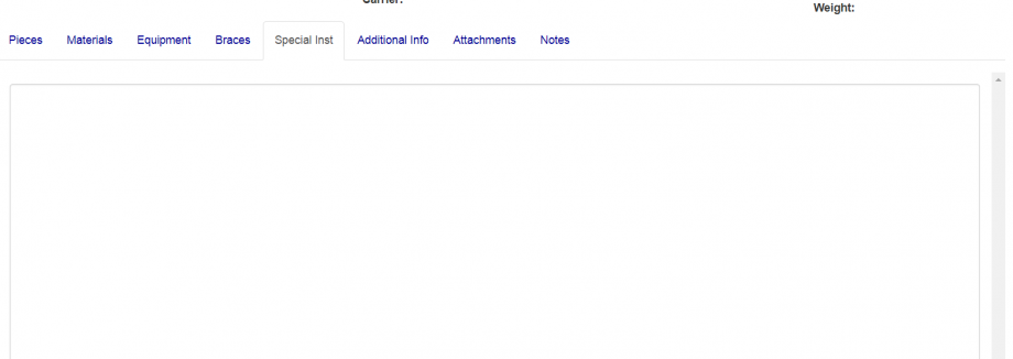 For the special instructions tab there is a large text box for you to input any special instructions.