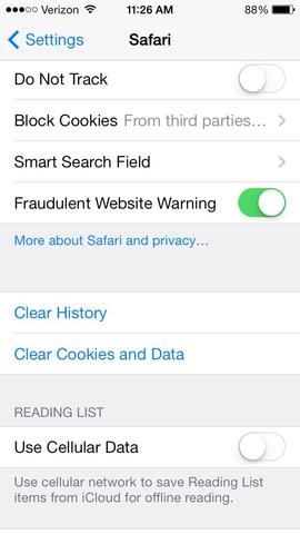 Scroll down and select Clear Cookies and Data