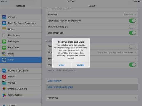 A pop-up will come up verifying that you want to clear the Cookies and Data. Select Clear.