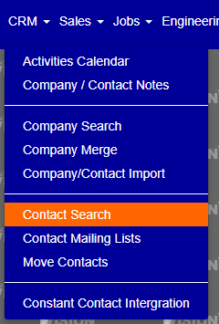 To Edit a Contact's Details, first navigate to the Contact Search screen by clicking the Contact Search link under the CRM tab in the main menu (Figure 1).