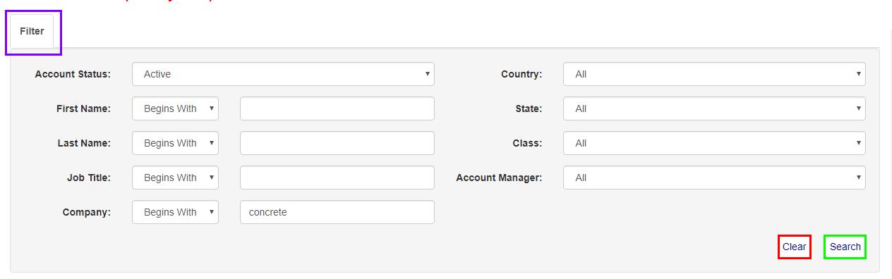- To clear/reset a current filter press the "clear" button (Red box in Figure 3).
