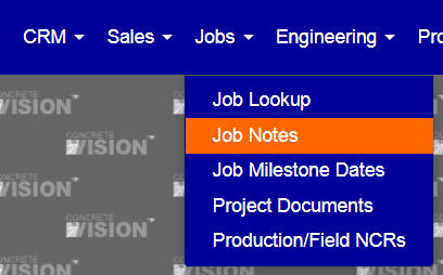 Using the Job Notes screen, you can easily view all Job notes or filter for specific notes based on: A Job Name, A Date Range, or A Note Creator. You can access this screen from the main Jobs menu tab.
