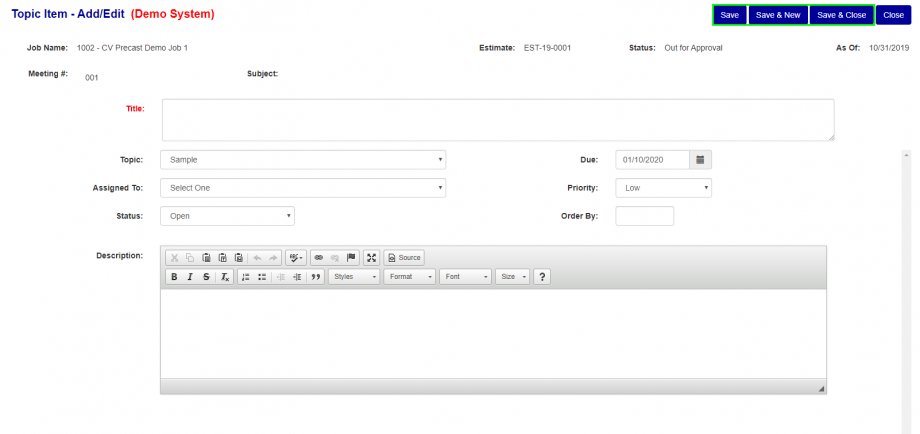 After adding the detail then you can either Save or Save & Close which function as normal, or use the Save & New which automatically creates and opens the edit for a new detail item/sub-topic.