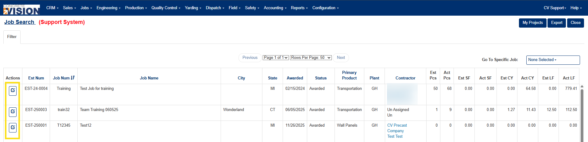 On the Job Search screen (Figure 2), click the Edit icon in the Actions column to the left of the job whose load information you want to view (Yellow box, Figure 2).
