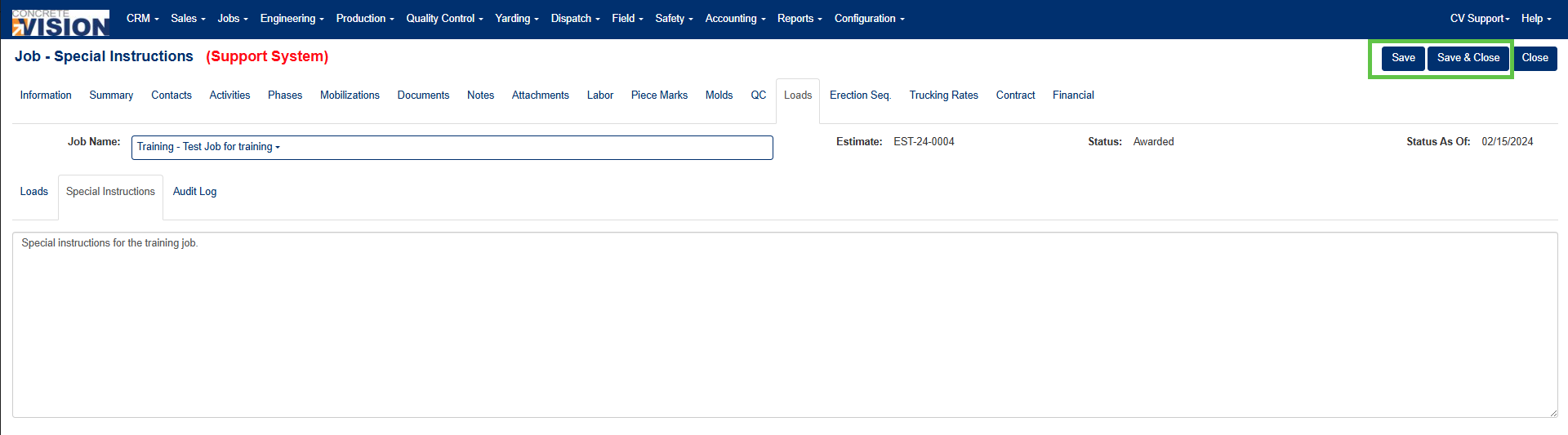 - allows updates to the Project Special Instructions included on the Delivery Ticket
