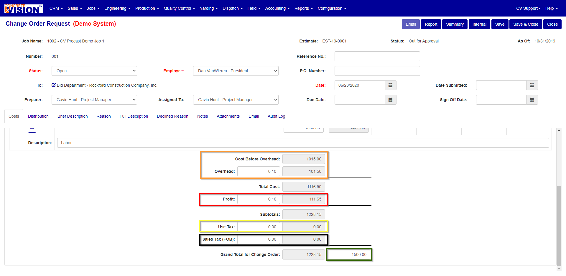 Update Grand Total for Change Order