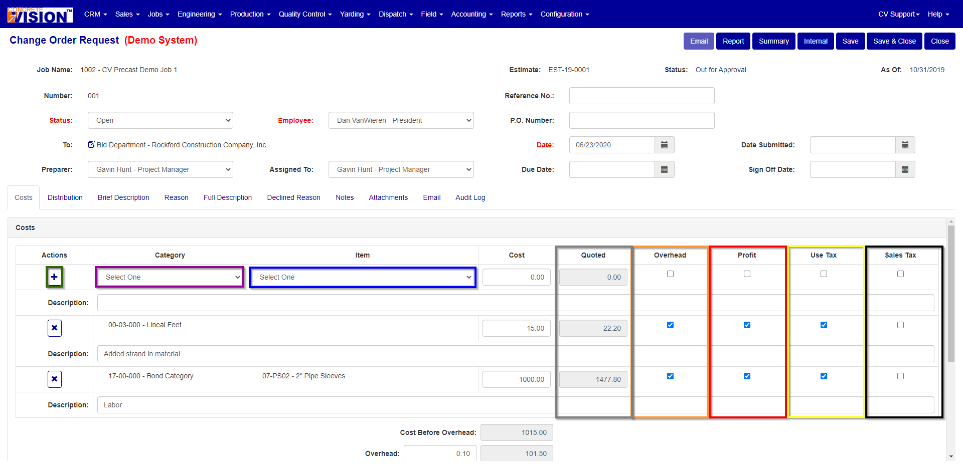 - Check the Overhead checkbox if you want the Cost included in the Overhead Total. (Orange box Figure 2b)