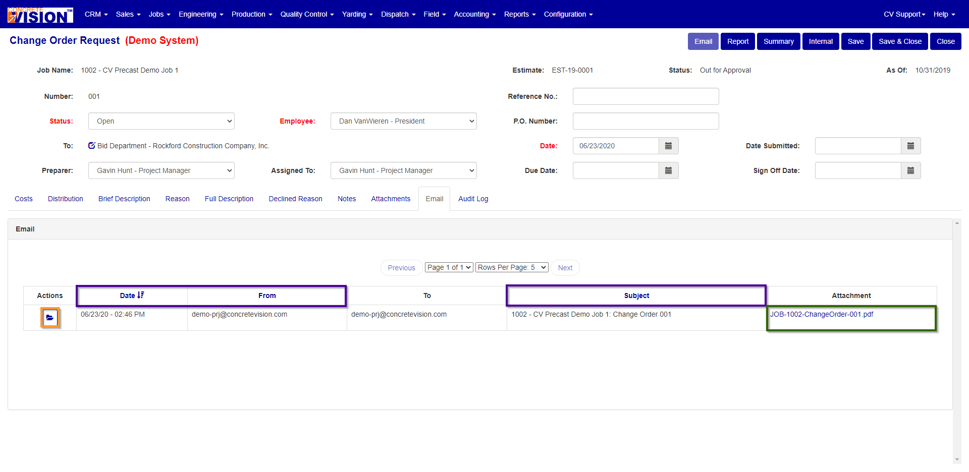Edit Project Documents: Change Order Request