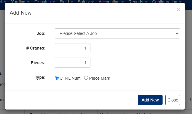 - Crane # - Enter the crane number
