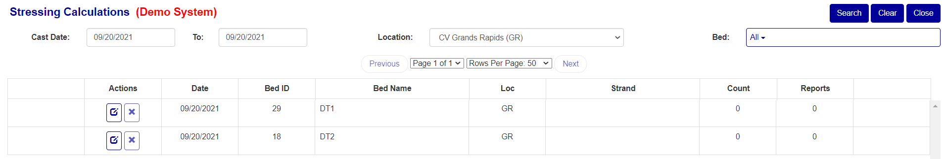 The Stressing Calculations screen is where you can add and edit Stressing Calculations. The main screen is where you select which bed you want to view the stressing calculations for (Figure 2).
