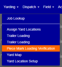 Using the Piece Mark Loading Verification screen under the Yarding menu (Figure 1), you can verify piece marks while/for loading based on the Location, Project, and Load.
