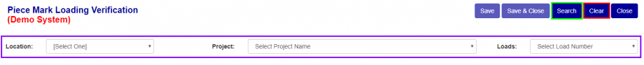 After completing each dropdown, you can search for all piece marks for loading by pressing the Search Button (Green box Figure 2).