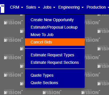 You access Cancel Bids from the Sales > Cancel Bids, shown below.
