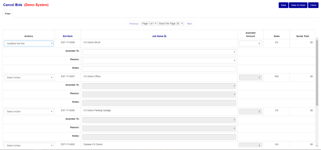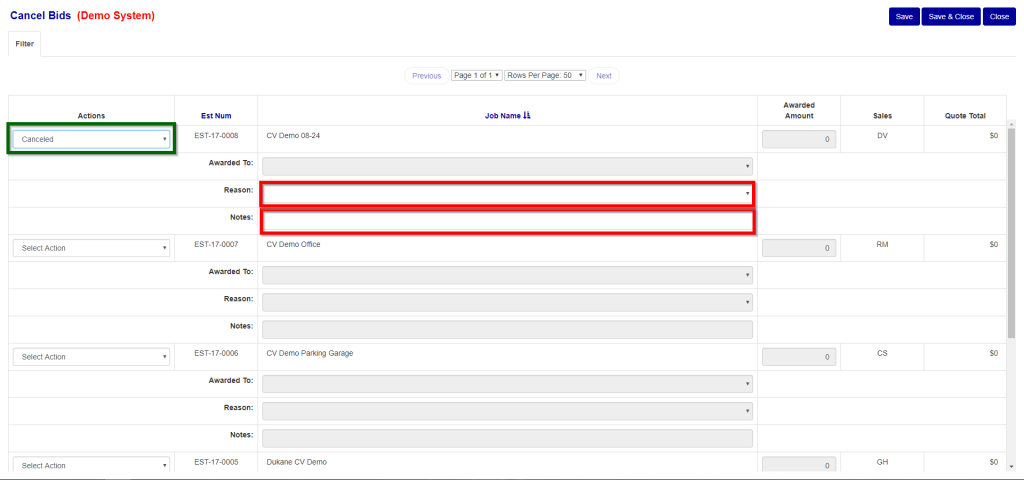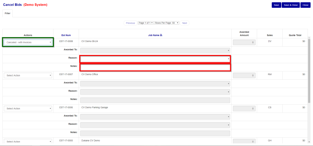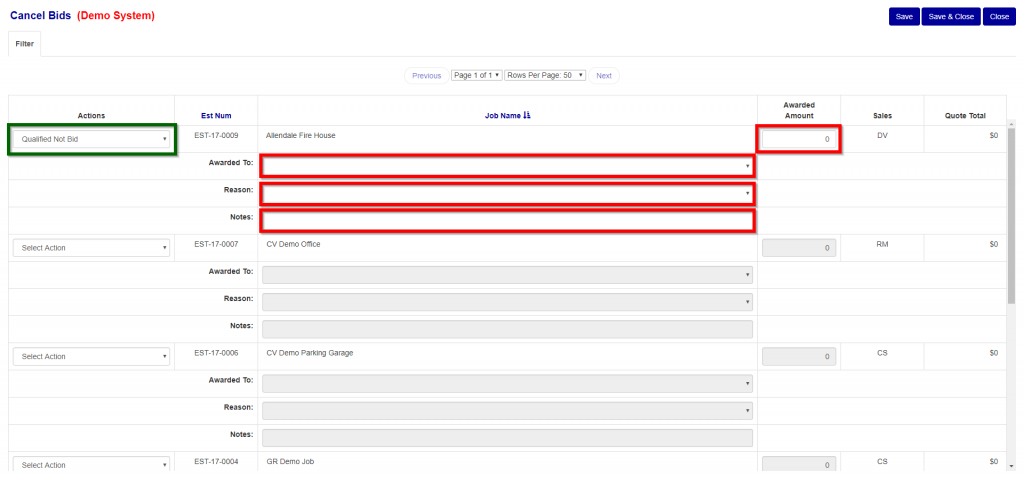 - Click on the job status dropdown and select “Qualified Not Bid” (Green Box in Figure 4).