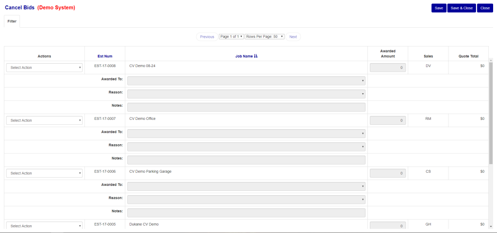 The Cancel Bids screen (see Figure 1) is where you can change the status of the job.