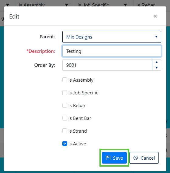 | 5 | Is Rebar | Flags category as "Rebar" (used to filter down material in some reports). | |