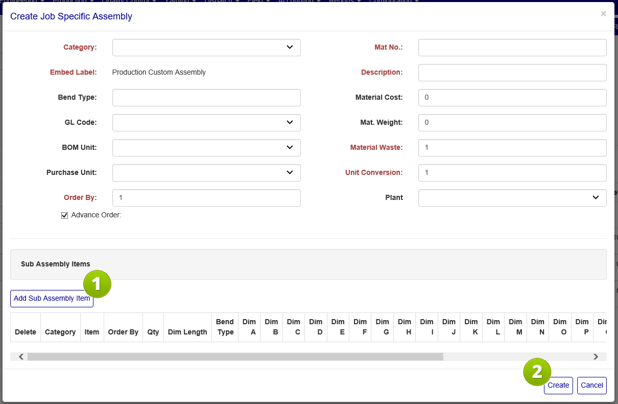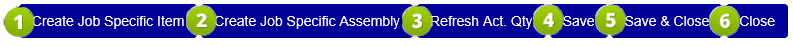 - Either click on the "Create Job Specific Item" or the "Create Job Specific Assembly" buttons (refer to Figure 3, buttons 1 and 2).