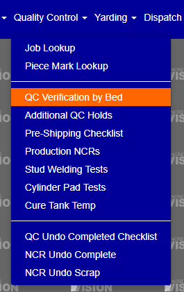 You access QC Verification by Bed from the Quality Control > QC Verification by Bed, shown below.