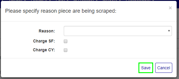 When you change the status of the NCR to Scrap, a window will open when you Save or Save & Close where you can mark whether to include the SF or CY if the material is still being charged, as well as select a reason for the scrap.