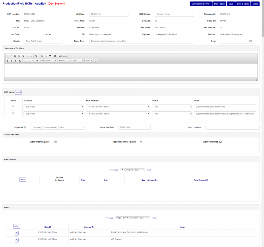 Edit Production NCR