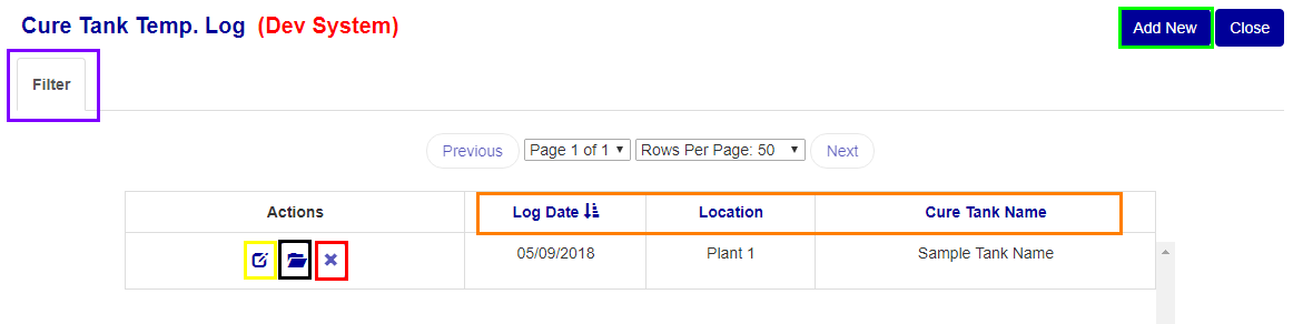To edit Temp. Log information, migrate to the edit page using the "edit" button (see Yellow box in Figure 2), just update any one of the input values and then select the Save or Save and Close button to save your changes.
