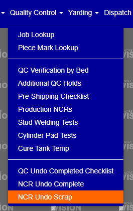 The NCR Undo Scrap feature allows you to revert previously completed Non-Conformance Reports (NCRs) back to an uncompleted status. This functionality is essential for quality control processes when corrections or additional work is needed on NCRs that were prematurely marked as complete.