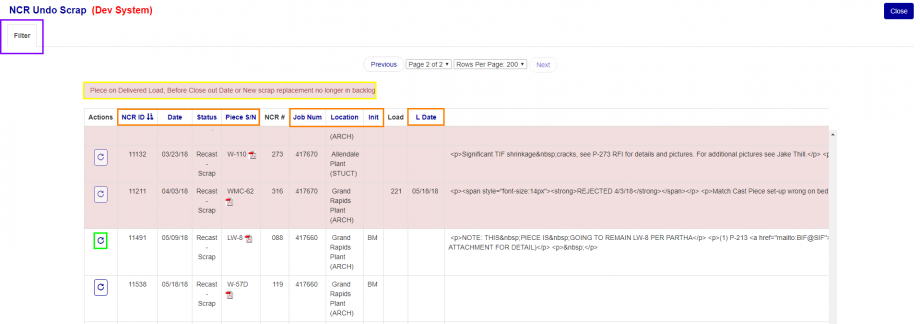 - Red background: NCRs that cannot be undone due to their current status