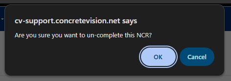 Once an NCR is successfully marked as uncomplete: