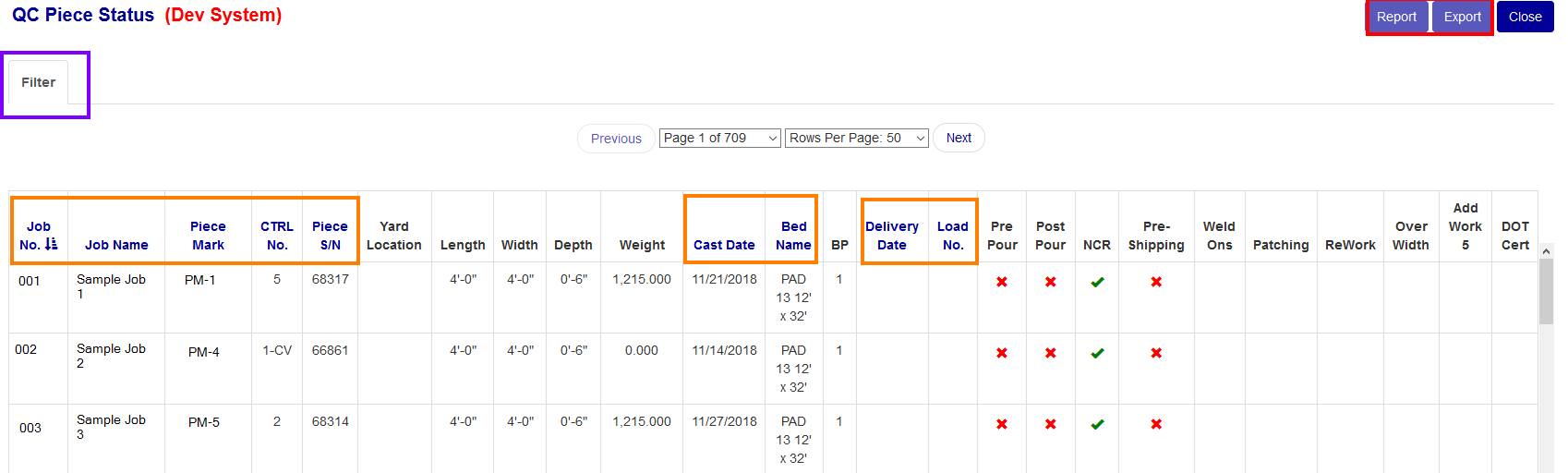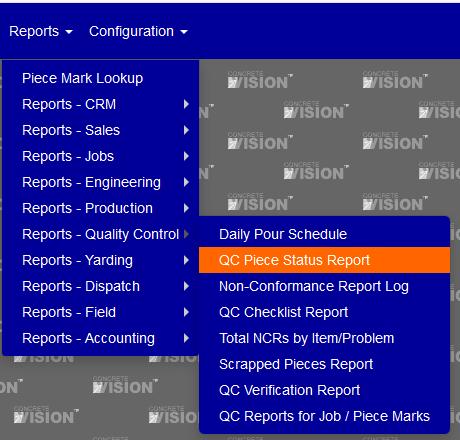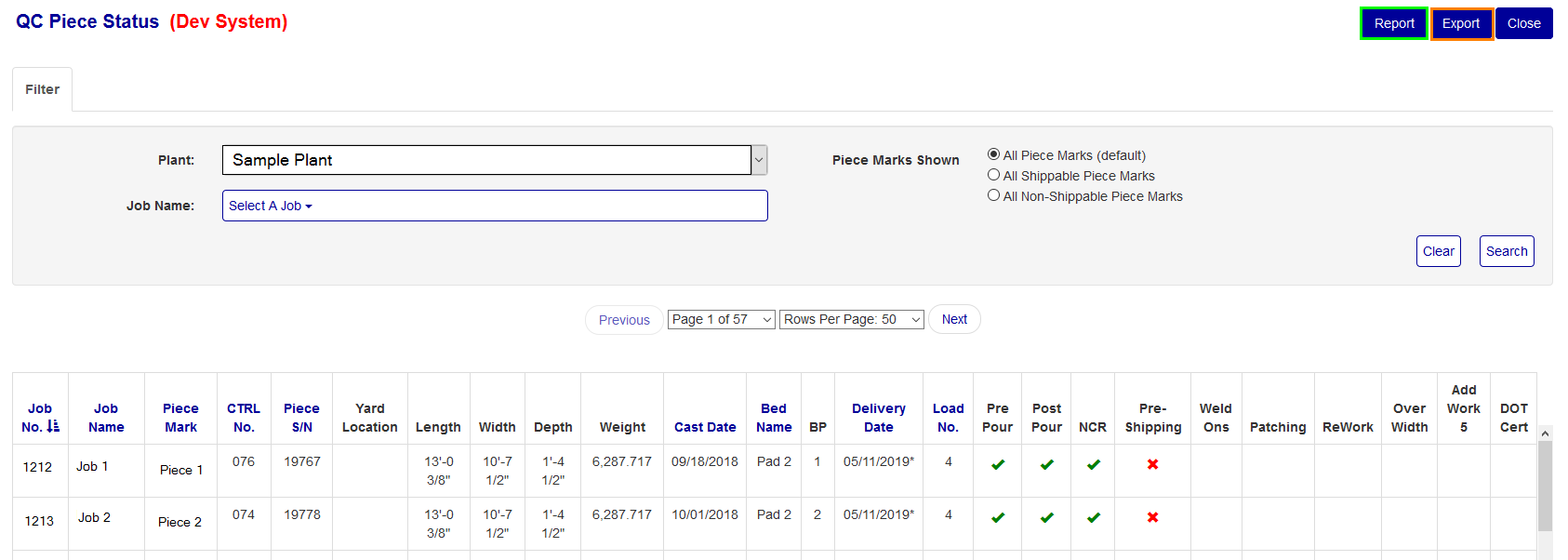 The QC Piece Status Report will display all pieces in the scheduled or inventory status by job.