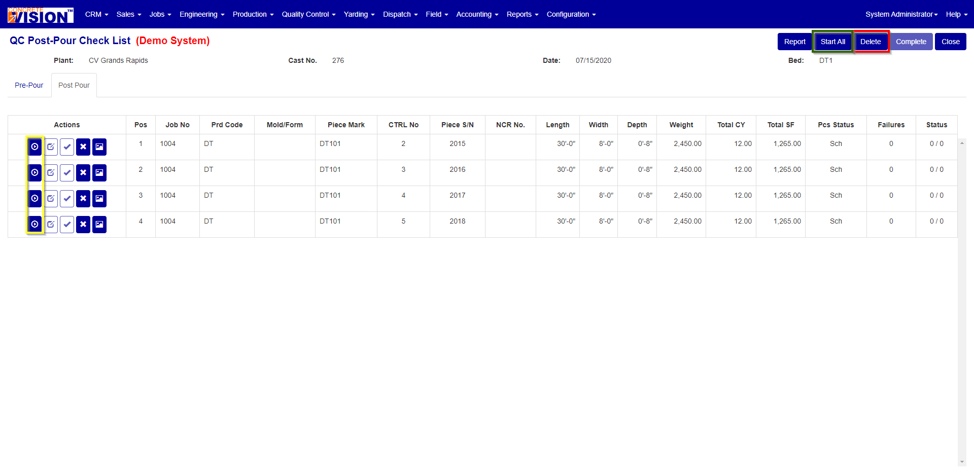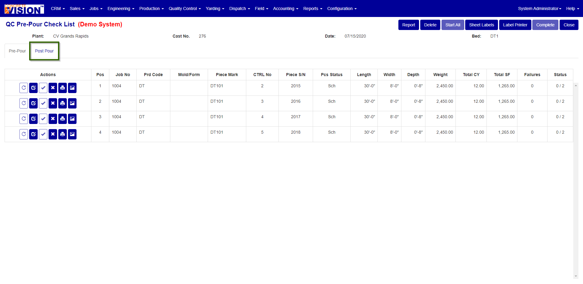 After all of the pieces have undergone the Post Pour Check List (See Figure 5) they need to be marked as completed, you can do this in one of two ways.
