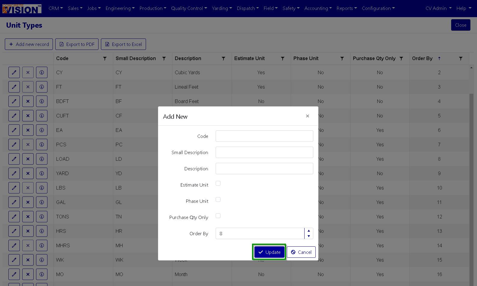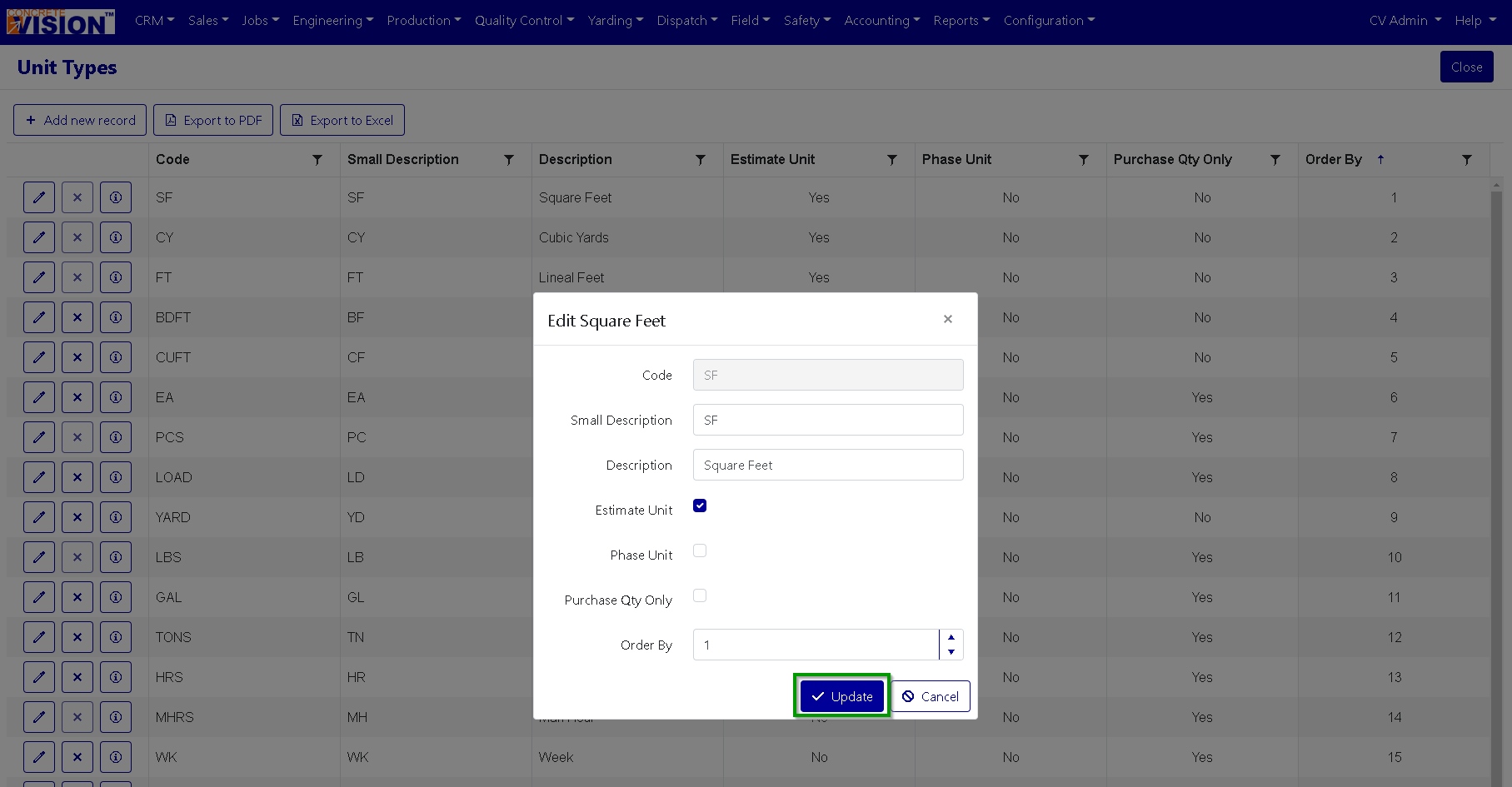 - You can change the Code. (Note: You cannot change a Unit Types' "Code" if it is in use)