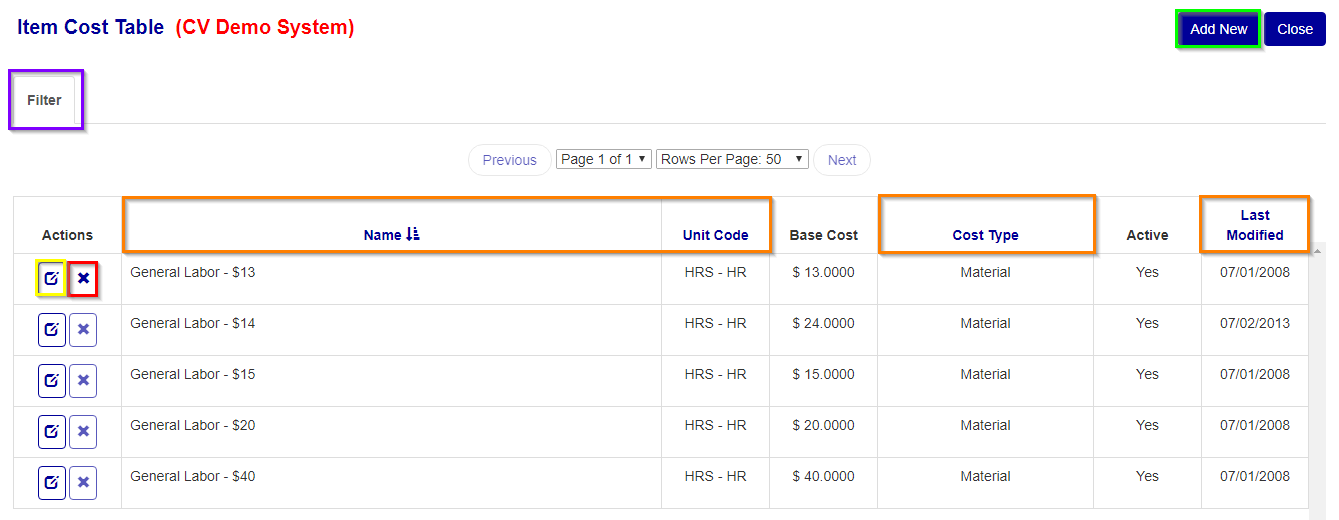To edit an item cost, click the "edit" button (see the Yellow box in Figure 2).