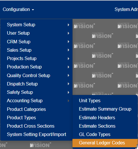 General Ledger (GL) Codes are account categories used to organize and track financial transactions in Concrete Vision. Depending on your system configuration, these may also be referred to as Cost Codes.