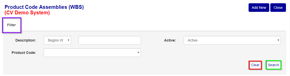 ** Searching and clearing the filter leaves the current screen, so ensure you have saved all changes you wish to keep before completing one of these actions.