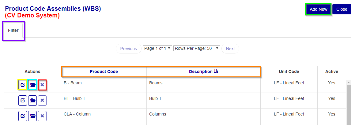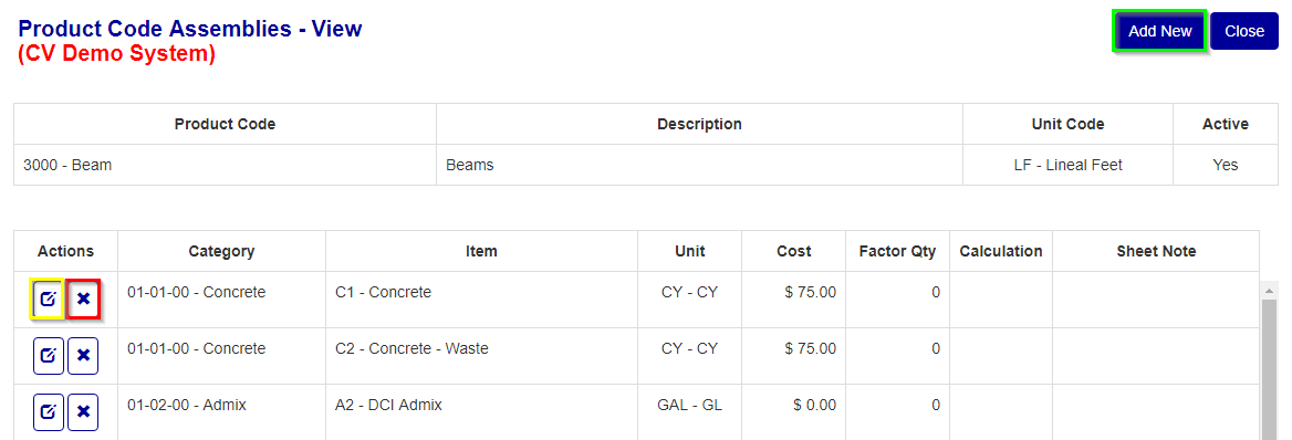 To add a Product Code Assembly, click the "add new" button (see the Green box in Figure 2).