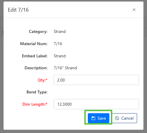 - Dim Length: Material dimension length