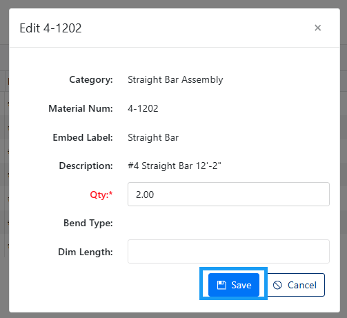 Editing Existing Material Items
