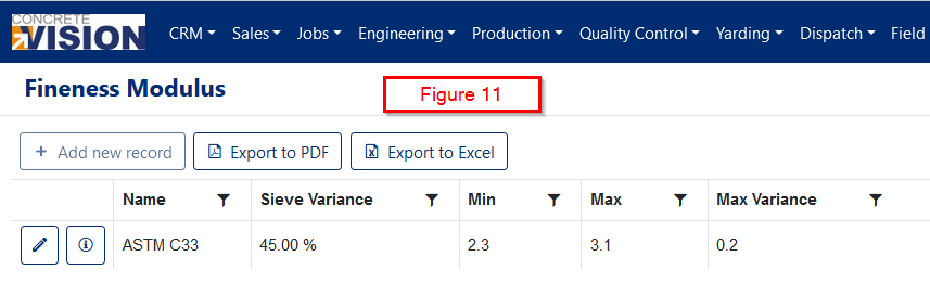 - Base Fineness Modulus: Numeric. Only available for Fine Aggregates