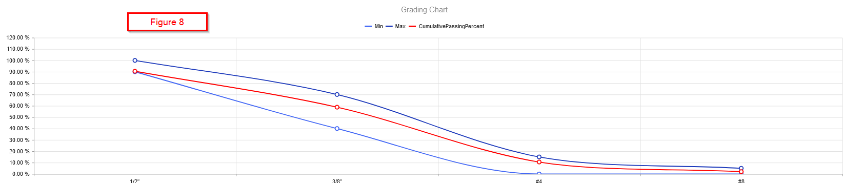 The results are graphed in a chart at the bottom of the page. Sieves that are marked "Excluded" are not shown in the chart (see Figure 8 bellow).