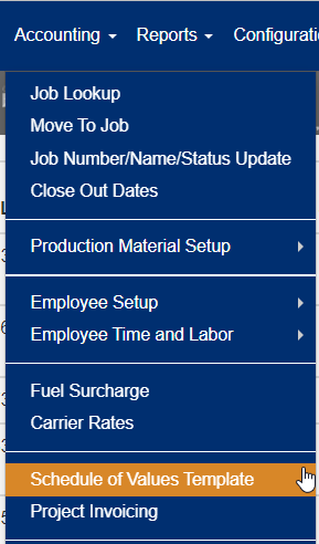 You can navigate to the Schedule of Values Template screen from the Accounting menu (Fig. 1)