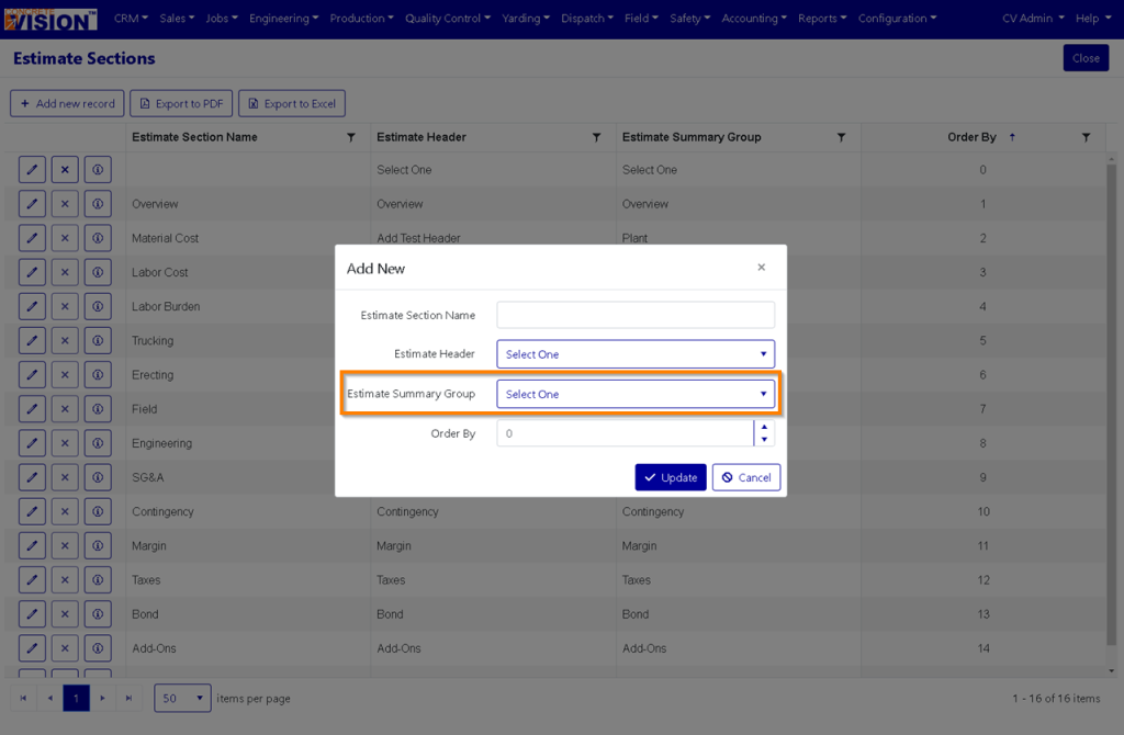 Add Estimate Summary Group