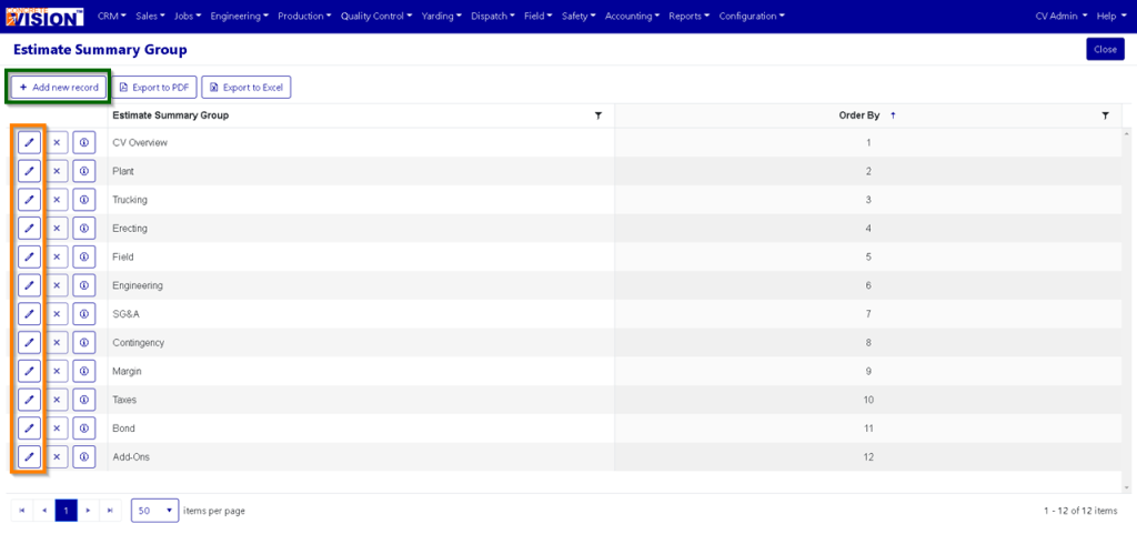 Click the "Add new record" button from the main Estimate Summary Group screen (see the Green box in Figure 2) to open the Estimate Summary Group Add Item window (see Figure 3).