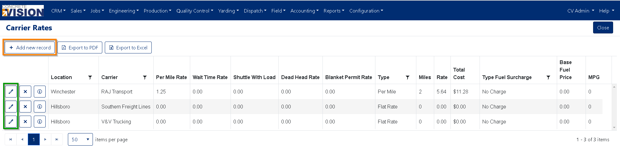 Edit Carrier Rates