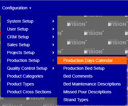 You access the Production Days Calendar from the Configuration > Production Setup menu (Figure 1).