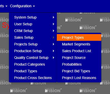 These options control what is in the drop down for project type when you create a new opportunity in Concrete Vision.