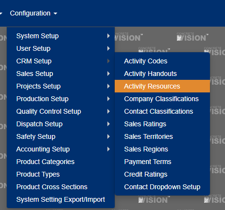 - Navigate to Configuration > CRM Setup > Activity Resources (see Figure 1)