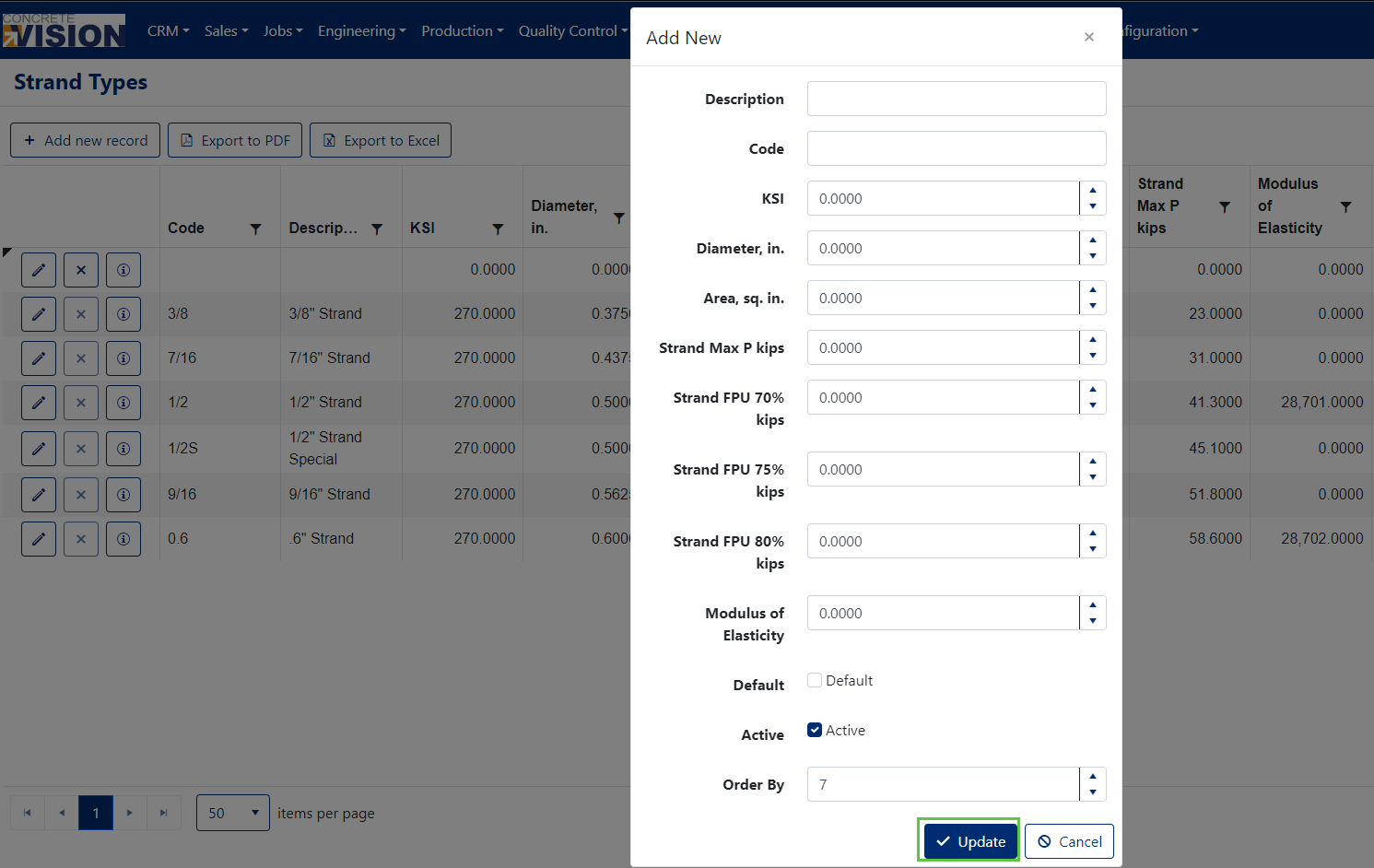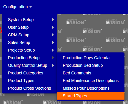 Strand Types Fields (typically comes from the PCI Design Handbook) and are assigned during the Production scheduling of plant beds.